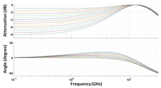 Typical response curve of the continuous time-domain linear equalizer (CTLE) as defined in Reference [4] in 0.5 dB step size.