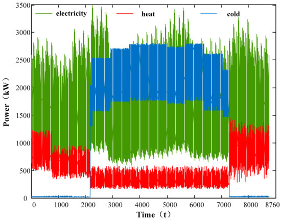 This study employed a series of typical industrial parks in southern China to validate the proposed method. The physical structure and equipment composition of the microgrid system is given in Figure 1. In regard to energy supply and demand, April to October are classified as cooling months (i.e., with large demand for cooling loads). Heating loads include the demand for drying and ventilation during the production and hot water for residential life; they have no definite supply period, but still show some seasonal characteristics. There are demands for electric loads throughout the year.