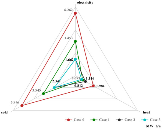 where , , and are the energy loss values of electricity, heat, and cold, respectively. The specific values can be extracted from the references [18].