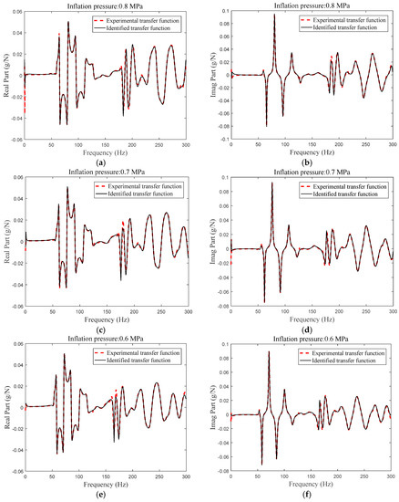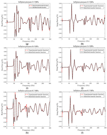 Meantime, the experimental transfer functions of the heavy load radial tire with a different inflation pressure are investigated in Figure 8.