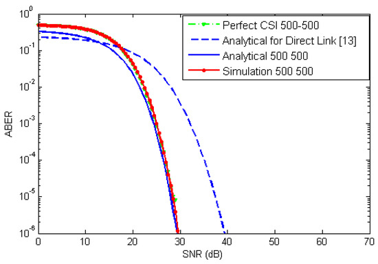 The generated analytical results are comparable to the CSI results as shown in Figure 2, Figure 3 and Figure 4. The generated simulation results show the accuracy of the analytical results in Figure 2, Figure 3 and Figure 4. Figure 2 shows an enhancement of around 10 dB between the direct link and using the relay.