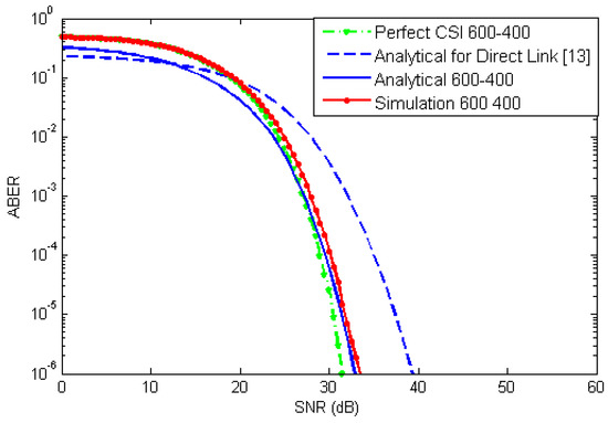 For the dual hop system proposed, an approximated average bit error rate (ABER) is calculated [23]: