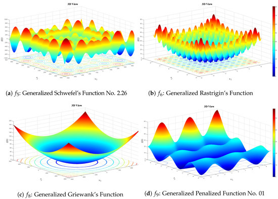 Population-based metaheuristics have been applied to different areas, including data mining [12], machine learning [13], computer science [14], simulation and system modelling [15], image processing [16], industry [17], and engineering and scheduling [18,19]. Some metaheuristic procedures supply better results in solving specific problems, whereas other metaheuristics are limited to certain domains of the decision variables; however, all of them are successful in solving optimization challenges [2]. Among these classic population-based methods, evolutionary algorithms (EAs) [7,20] constitute a set of algorithms based on Darwin’s evolutionary theory, where they start from an initial randomly generated population, which is improved over generations through recombination and mutation operators. Genetic algorithms (GAs) [21] are a subset of EAs, where the individuals in the population are in the form of an array or chromosome. Other important population-based metaheuristics are the gravitational search algorithm (GSA) [2] (it is based on the Newtonian law of gravity), the black hole (BH) algorithm [22] (where the best solution of a population is treated as a black hole that attracts other solutions or normal stars around it during the search), ant colony optimization (ACO) [23] (an ant colony searches for food according to the concentration of a chemical substance called a pheromone that ants deposit during the search), particle swarm optimization (PSO) [24] (it simulates bird behaviour using a simplified social model), the bat algorithm (BA) [25] (it is inspired by how bats look for their prey using echolocation), the artificial bee colony (ABC) algorithm [26] (it is inspired by the behaviour of honeybee swarms), and the artificial chemical reaction optimization algorithm (ACROA) [27] (it is inspired by some types and frequencies of certain chemical reactions). In the last five years, several optimization algorithms have been developed that consider novel search strategies and provide significant results. An important fraction of these methods is based on the social behaviour of a group of individuals of a determined live species. One of them considers, as a source of inspiration, human reasoning to make decisions when faced with fuzzy data [28]. Some of these techniques are: grey wolf optimizer (GWO) [29] (it imitates the command hierarchy and hunting strategy of grey wolves), the pity beetle algorithm (PBA) [30] (it was inspired by the grouping behaviour of the beetle Pityogenes chalcographus, looking for food and nests), shark smell optimization (SSO) [31] (it simulates the skill of a shark for finding their prey by using its sense of smell and moving toward the source of the odour), symbiotic organisms search (SOS) [32] (mimics the symbiotic interaction strategies followed by organisms to survive and propagate in the ecosystem), dolphin echolocation (DOE) [33] (it considers the echolocation system used by dolphins in searching for food), the whale optimization algorithm (WOA) [34] (it mimics the social behaviour of humpback whales), and the emperor penguin optimizer (EPO) [35] (it simulates the huddling behaviour of emperor penguins (Aptenodytes forsteri)).