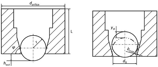 Here, r, , and , respectively, denote the radius of the ball, the gap between the orifice and the ball, and the slope angle of the orifice, as shown in Figure 4. Gap can be obtained by the displacement of cam as: