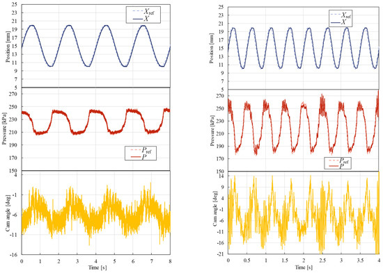 Results of pressure control (left: 0.1 Hz, right: 5.0 Hz).