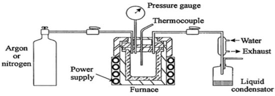 A suitable quantity of the supported LDH was dispersed in 120 mL of methanol for 12 h. Then, the mixture was retained with 500 mL ethanol in a pressurized container with a temperature controller unit (autoclave) as shown in Figure 1. A limited decomposition of the supported LDH was achieved under supercritical conditions (temperature = 250 °C and pressure = 100 bar). The temperature of the alcoholic solution in the autoclave was gradually increased to become higher than the critical temperature of the solvent. Accordingly, the pressure increased to reach a value higher than the critical value. At critical temperature and pressure, methanol and ethanol become gases and cannot be liquefied because of the supercritical fluids. After that, the pressure released from the autoclave approaches the atmospheric pressure. The inert gas (argon) was used to evacuate any remaining gases until the temperature of the autoclave reached to room temperature to prevent liquid condensation inside the pores of the prepared structure.