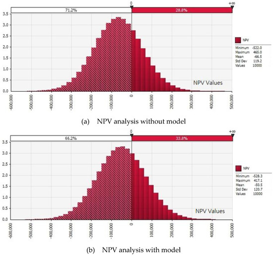 NPV probabilistic analysis (a) without model and (b) with model.