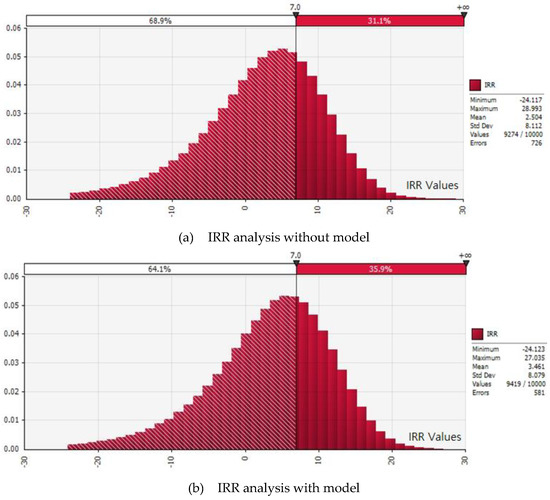 IRR probabilistic analysis (a) without model and (b) with model.