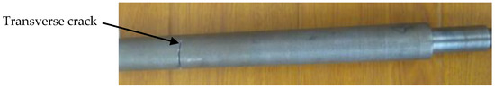 Suppose that the elastic waves propagate from location x0 to xl, and there is only one transverse crack, located at xc, for simplicity. The transverse crack is artificially generated by sawing a normal shaft with a hacksaw, as shown in Figure 5.