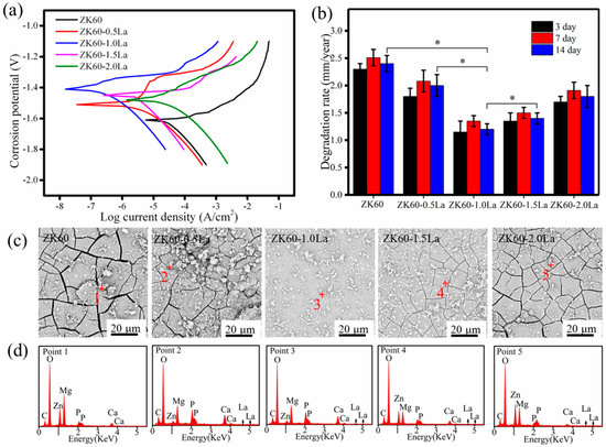 | ZK60-0.5La | −1.51 ± 0.01 | 39.4 ± 5 |