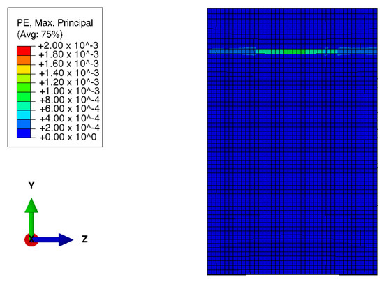 The thermomechanical simulation was organized by analogy to the sequence of actions during the analysis of the experiment. At first, the external forces were applied. While they were kept constant thereafter, the temperature fields, computed in Section 3, were prescribed as a time-dependent input, resulting in a transient thermomechanical loading of the structure.
