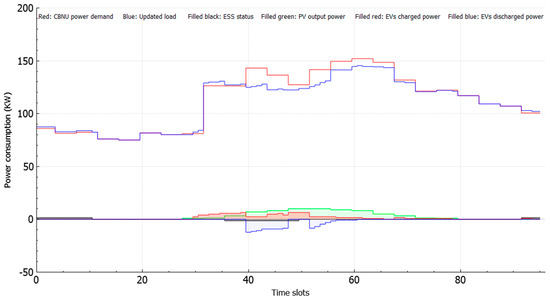 - Allocate numbers of charging/discharging timeslots into the building load profile.