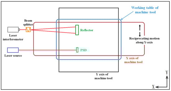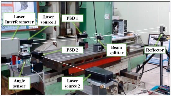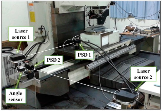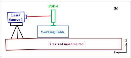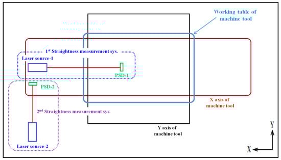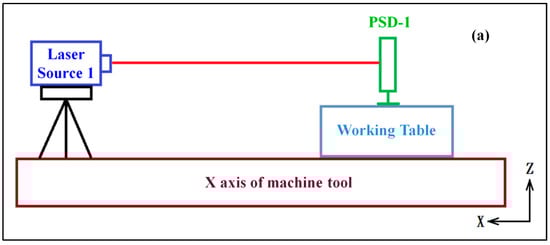 First, PSD-1 was installed on the working table of the machine tool, Laser Source-1 (LS-1) and PSD-2 were installed on the X-axis, and Laser Source-2 (LS-2) was installed aside as shown in Figure 4. Secondly, beam paths were adjusted according to the distance between beam spots projected on PSD. For the two straightness measurement systems had no mutual effect on each other, it was unnecessary to pay attention to the adjustment order of beam paths.