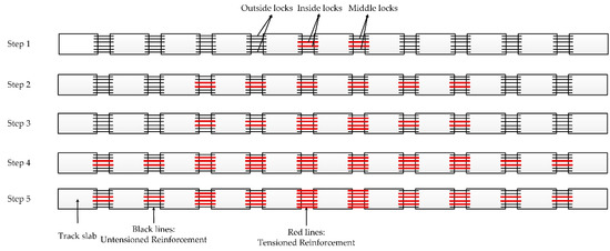 Longitudinal reinforcement is tensioned in this order until the completion of a construction section. The tensioning sequence is shown in Figure 4.