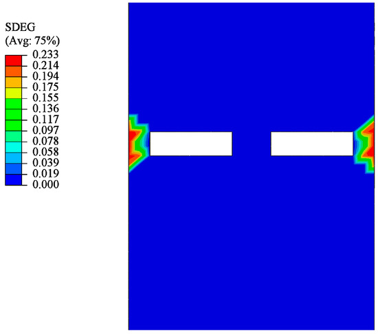 where is the effective displacement of the element node when the failure starts, is the effective displacement of the node when the damage value D reaches 1, and is the maximum displacement of nodes in the load history. 0 < D < 1 means that the interface element is in the softening area and, when the D value is 1, it means that the interface element is broken.