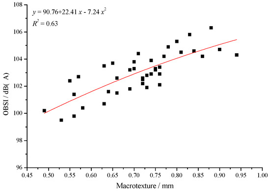 The statistical results of a correlation analysis between the macrotexture and the noise of a transverse groove concrete pavement are shown in Figure 4.