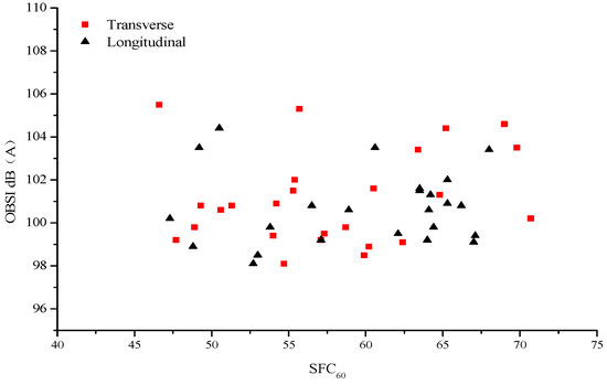 Figure 6 shows the statistical results of the regression analysis between side-way force coefficient (SFC) and the corresponding tire/road noise.
