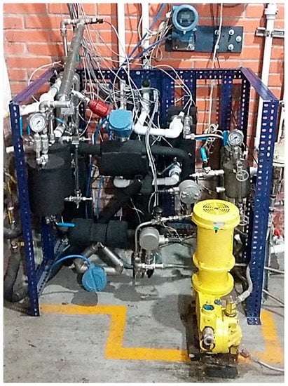 The plate heat exchangers utilized were manufactured by Alfa Laval™. The model Alfanova 52® was used in the components acting as generator, economizer, and absorber, the number of plates in these components was 40. The condenser and evaporator utilized the model Alfanova 27® with 20 plates in each heat exchanger. A Milton Roy® diaphragm pump was used to send the solution from the absorber to the generator. The expansion valve used was a stainless steel needle valve with a maximum flow coefficient equal to 0.004. A couple of small capacity (2 L) storage tanks were included in the system. One of them was installed in the line at the exit of the generator, whose porpoise was to allow the phase separation, facilitating the ammonia vapor to flow to the condenser, and the solution liquid-phase to flow to the absorber. The other tank was useful to keep the liquid solution at an adequate level, in order to avoid the undesirable flow of the solution to the evaporator. The ACS measurements are 1 × 1 × 0.8 m (width-height-depth), resulting in a system with an overall volume of around 0.7 m3. All of the components in the system (including the piping and valves) are made out of stainless steel to avoid corrosion problems caused by ammonia.