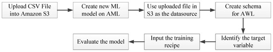 The process flow for model creation on the Amazon Web Services Machine Learning (AML).