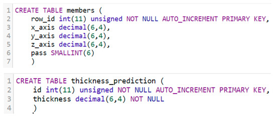 The database will consist of 2 tables, one for storing the sensor data and the other for storing the prediction results. To create the tables, we initiated the queries shown in Figure 13.