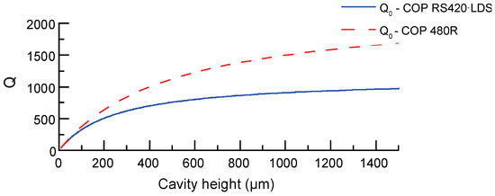 Influence of cavity height on the unloaded quality factors (Q) for COP RS420-LDS and COP 480R.