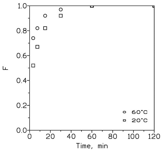 Influence of temperature on gold(III) adsorption. The F values were calculated as in Equation (3).