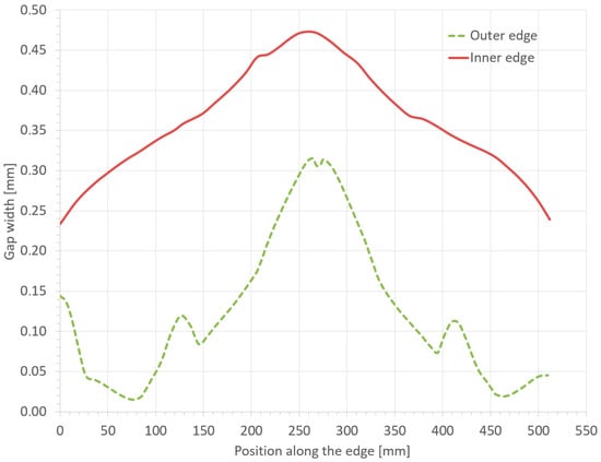 Gap width (for the inner and outer edge) in relation to a position along the edge (the local maxima correspond to ribs on the cover).