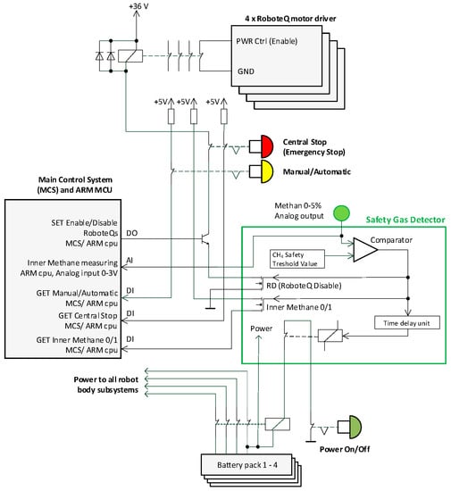 Implementation of safety gas detector into the robot subsystems—simplified diagram.