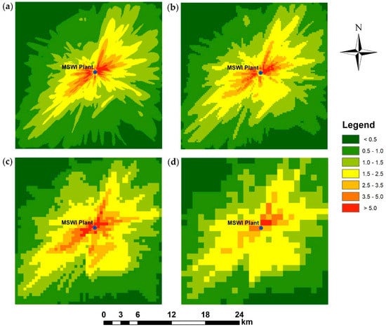 - Oleniacz, R. Assessment of the impact of municipal waste incineration plants on air quality and the possibilities of its reduction. Pol. J. Environ. Stud. 2014, 23, 95–104. [Google Scholar]