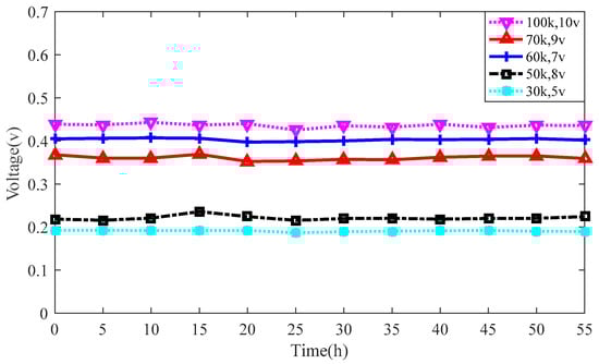 Figure 6 shows the relationship between the focused signals and the corrosion time. Obviously, the amplitude of the voltage did not produce any obvious changes in the signal, and the transducer was stable in the NaCl solution. Therefore, the piezoceramic transducers that were protected with epoxy resin were not affected by corrosion in the NaCl solution, and remained working properly.