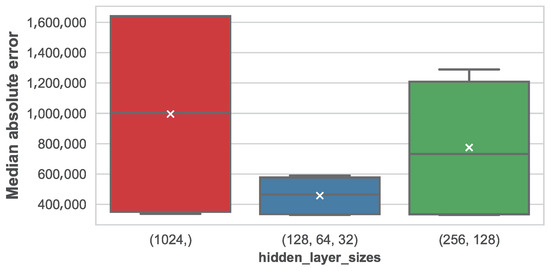 Distribution of the median average error based on the different parameters for the multi-layer perceptron.