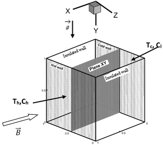 - Sezai, I.; Mohamad, A.A. Double diffusive convection in a cubic enclosure with opposing temperature and concentration gradient. Phys. Fluids 2000, 12, 2210–2223. [Google Scholar] [CrossRef]