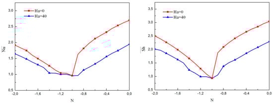 The average Nusselt and Sherwood numbers, on the isothermal walls are defined as: