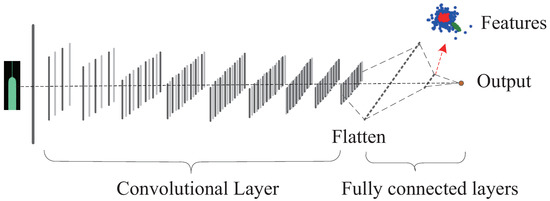 the D model of the GAN is designed as the deep convolutional neural network, as shown in Figure 2. Here, the dimension of the input sample signal feature reaches 4096. The numbers of feature channels of each convolutional layer are [16, 32, 32, 64, 64, 128, 128, 256, 256], and the corresponding feature dimensions are [2048, 1024, 512, 256, 128, 64, 32, 16, 8]. Especially, the convolution kernel of each layer is 31 × 1, whose nonlinearly mapped function is based on the Leakyrelu. Meanwhile, the stride is 2. At last, the output data of the final convolutional layer transpose into one-dimensional features after through the fully connected layers, whose dimension is 1 × 8. At the moment, the output of the penultimate layer can be used as the feature, while the output of the last dimension is to judge whether the input signal is real or fake.