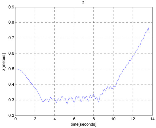 Figure 7 shows the depth of the vehicle with respect to time. See that the depth of the vehicle changes according to target depth change. We use the fuzzy method in Section 3.5 to reduce the fluctuation of the vehicle, as it follows the target depth. Thus, the fluctuation of the vehicle gradually decreases as time goes on.