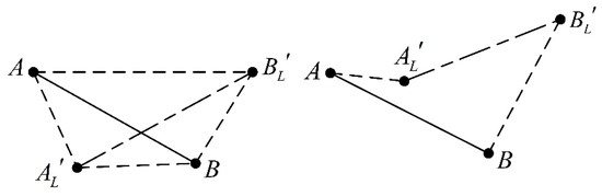 In the plane, represents the point with the largest -coordinate among the four support points (,, , and ), whereas the -coordinate of is the smallest one, as shown in Figure 6.