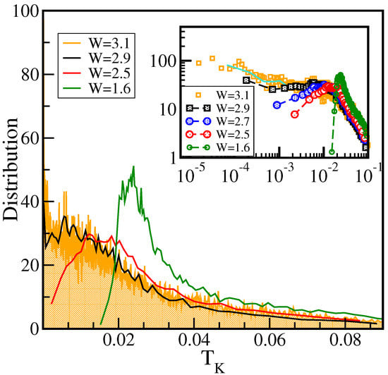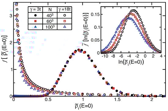 - Ujfalusi, L.; Varga, I. Finite-size scaling and multifractality at the Anderson transition for the three Wigner-Dyson symmetry classes in three dimensions. Phys. Rev. B 2015, 91, 184206. [Google Scholar] [CrossRef]