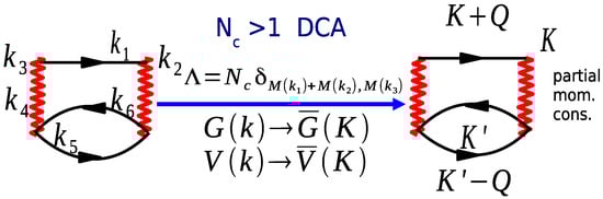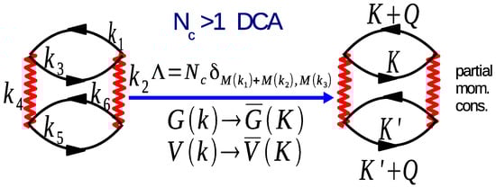- Jarrell, M.; Maier, T.; Huscroft, C.; Moukouri, S. Quantum Monte Carlo algorithm for nonlocal corrections to the dynamical mean-field approximation. Phys. Rev. B 2001, 64, 195130. [Google Scholar] [CrossRef]