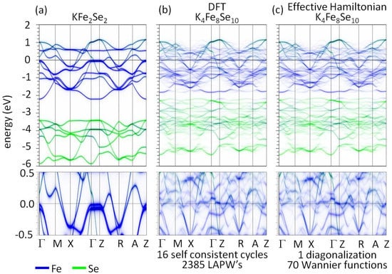 - The second step is to derive the low-energy Hamiltonians using a projected Wannier function transformation in which a set of atomic orbitals is projected on the bands close to the Fermi level [75,76,202]. For the case of KFeSe, one can project Fe-d and Se-p orbitals on the bands within [−6, 2] eV [199]. This results in two ordered tight-binding Hamiltonians. One for the normal cell , and one for the single-impurity supercell .