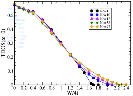 - Terletska, H.; Ekuma, C.E.; Moore, C.; Tam, K.M.; Moreno, J.; Jarrell, M. Study of off-diagonal disorder using the typical medium dynamical cluster approximation. Phys. Rev. B 2014, 90, 094208. [Google Scholar] [CrossRef]