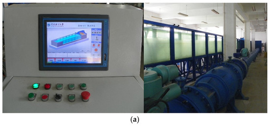 The locations of electric resistance strain gauges and the properties of the model risers are presented in Figure 2 and Table 1. Figure 2a shows the sketch map of the model riser, Figure 2b shows the risers used in the experiment, and Figure 2c shows the holistic test setup for the riser.