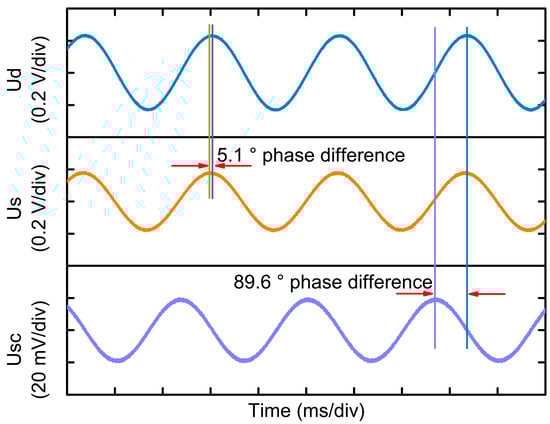 According to Equation (11), we can obtain that the amplitude of the coupling voltage in the sensing coil is proportional to that of the driving voltage. The coupling voltage in the sensing coil has a phase difference of π/2 with the driving voltage.