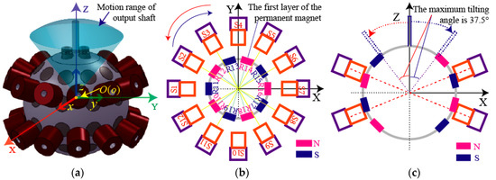 - Wang, W.; Wang, J.; Jewell, G.W.; Howe, D. Design and control of a novel spherical permanent magnet actuator with three degrees of freedom. IEEE/ASME Trans. Mechatron. 2003, 8, 457–468. [Google Scholar] [CrossRef]
