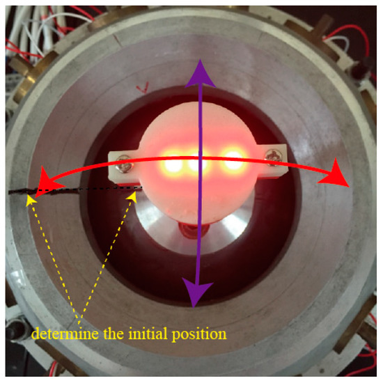 The rotor shaft can make a tilting motion with respect to the z axis in the SCF, the tilting angle varied between 0° to 37.5°. The initial position was determined by drawing two lines on the stator shell and spherical rotor, respectively, as shown in Figure 14.