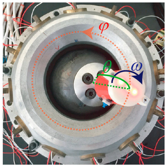 When the rotor was rotating around the z axis at the center point, i.e., the tilting angle_ was 0°, as shown in Figure 17. The spinning angle of the rotor shaft can be calculated from the images which were taken by the high-speed camera.