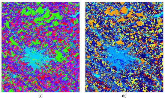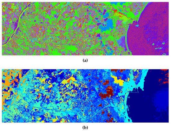 Analysis of long Landsat SITS: (a) DTW-based K-means clustering [], (b) LDA-based clustering [].