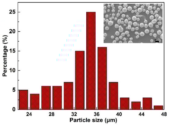 The initial powders selected for this study were commercial Inconel 625 produced by gas atomization with the particle sizes ranging from 22 to 47 μm (as shown in Figure 1) and used without further processing. The data were collected based on the standard method in Reference []. The powder is composed of Ni-Cr-Fe-Nb-Mn-Mo-Si. The chemical compositions are given in Table 1. In the present study, Inconel 625 samples were fabricated on a 250 × 250 mm building platform by EBSM R2 device with the beam power of 300 W and scan speeds of 500 mm/s. The processing values were demonstrated as the optimum parameters for manufacturing AM-nickel based super alloys with almost fully density. Figure 2 represents an overview of the AM processing strategy. Each layer was scanned once using vectors oriented along either the X-axis (scan direction-x, SDx) or the Y-axis (scan direction-y, SDy), alternatively. The fabricated parts were wire-cut from the steel substrate for mechanical polishing with emery papers down to 1200 grit and 0.5 µm wet diamond pastes.