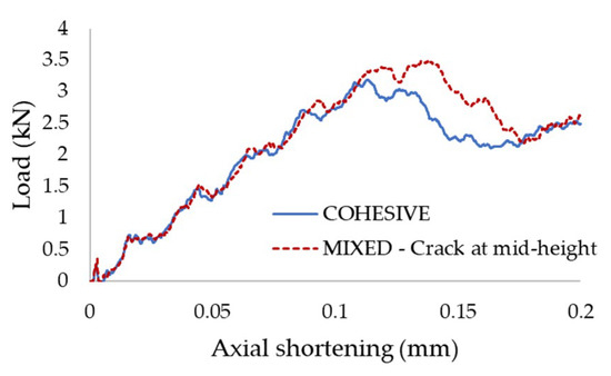 Axial-load shortening curve produced by COHESIVE and MIXED models.
