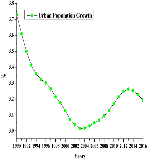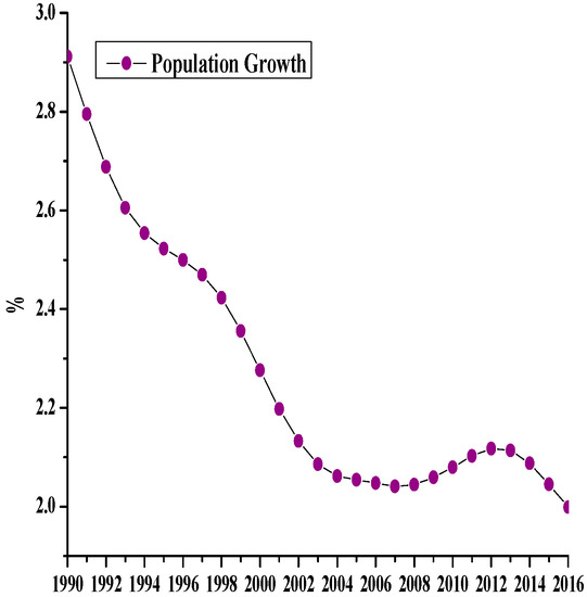 Time span data from 1990–2016 was used in this study, which was collected from the WDI (World Development Indicators). Below, Table 1 represents the variables used in this study: