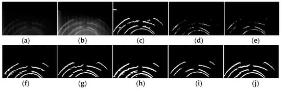 Performance comparison of the eight methods with image 9; (a) original image; (b) filtered image; (c) approach 1; (d) approach 2; (e) approach 3; (f) approach 4; (g) approach 5; (h) approach 6; (i) approach 7; (j) approach 8.